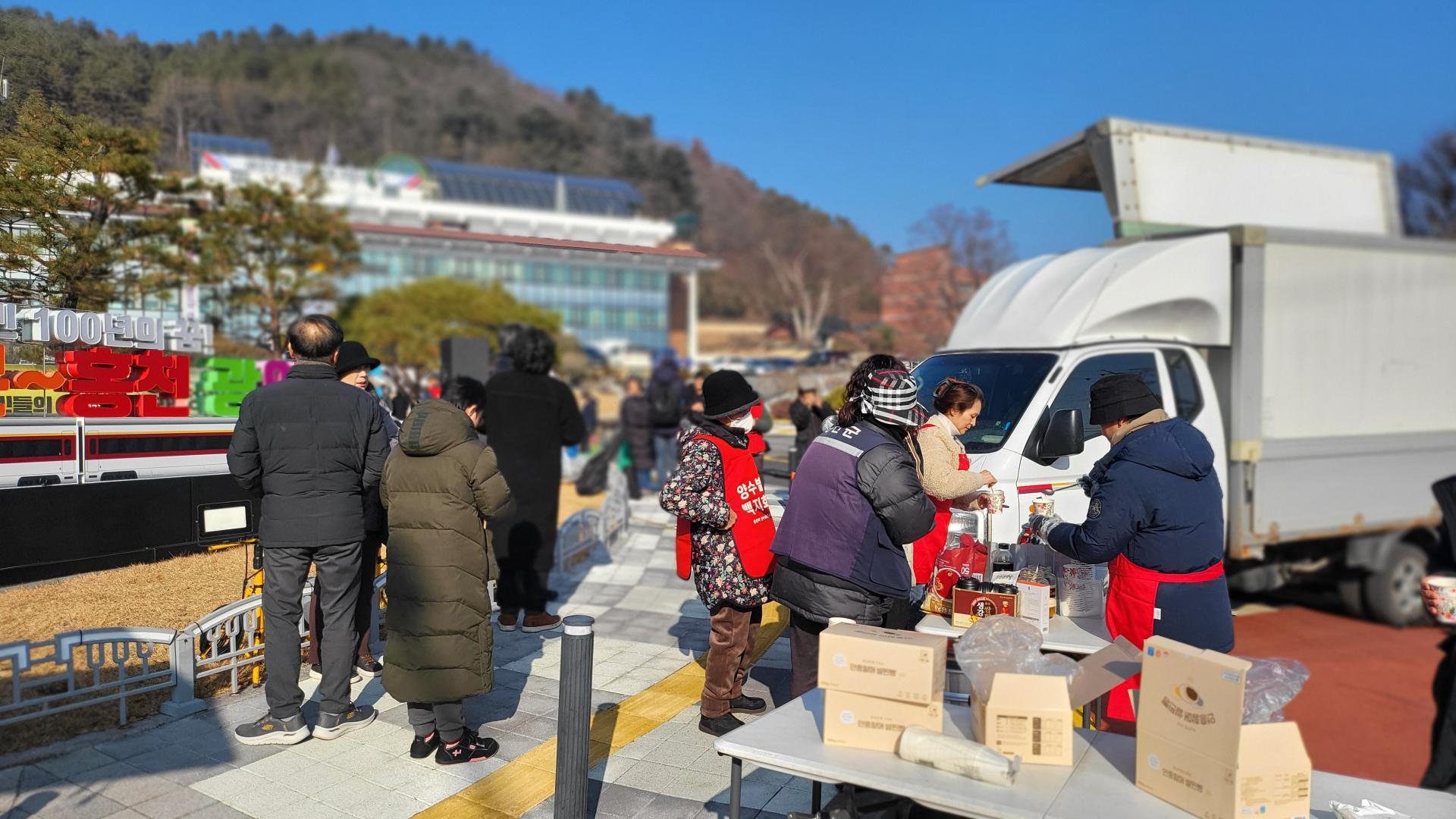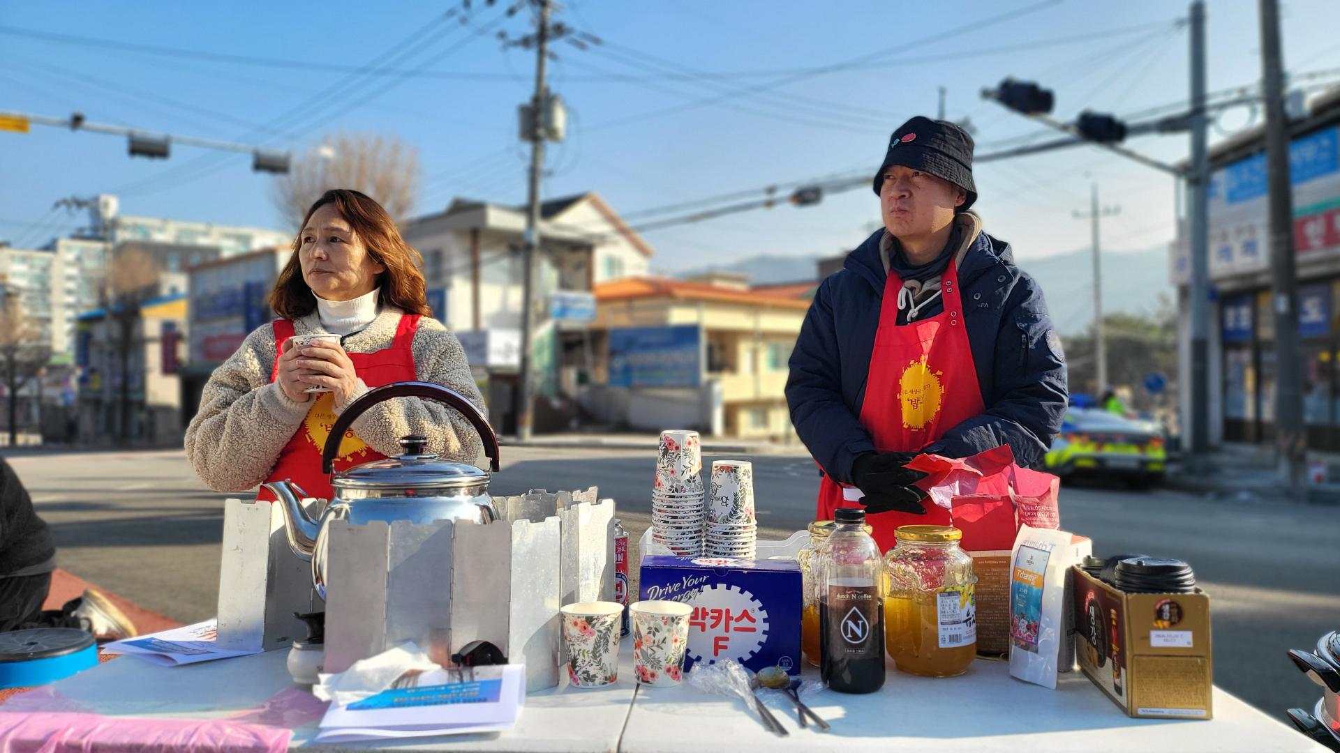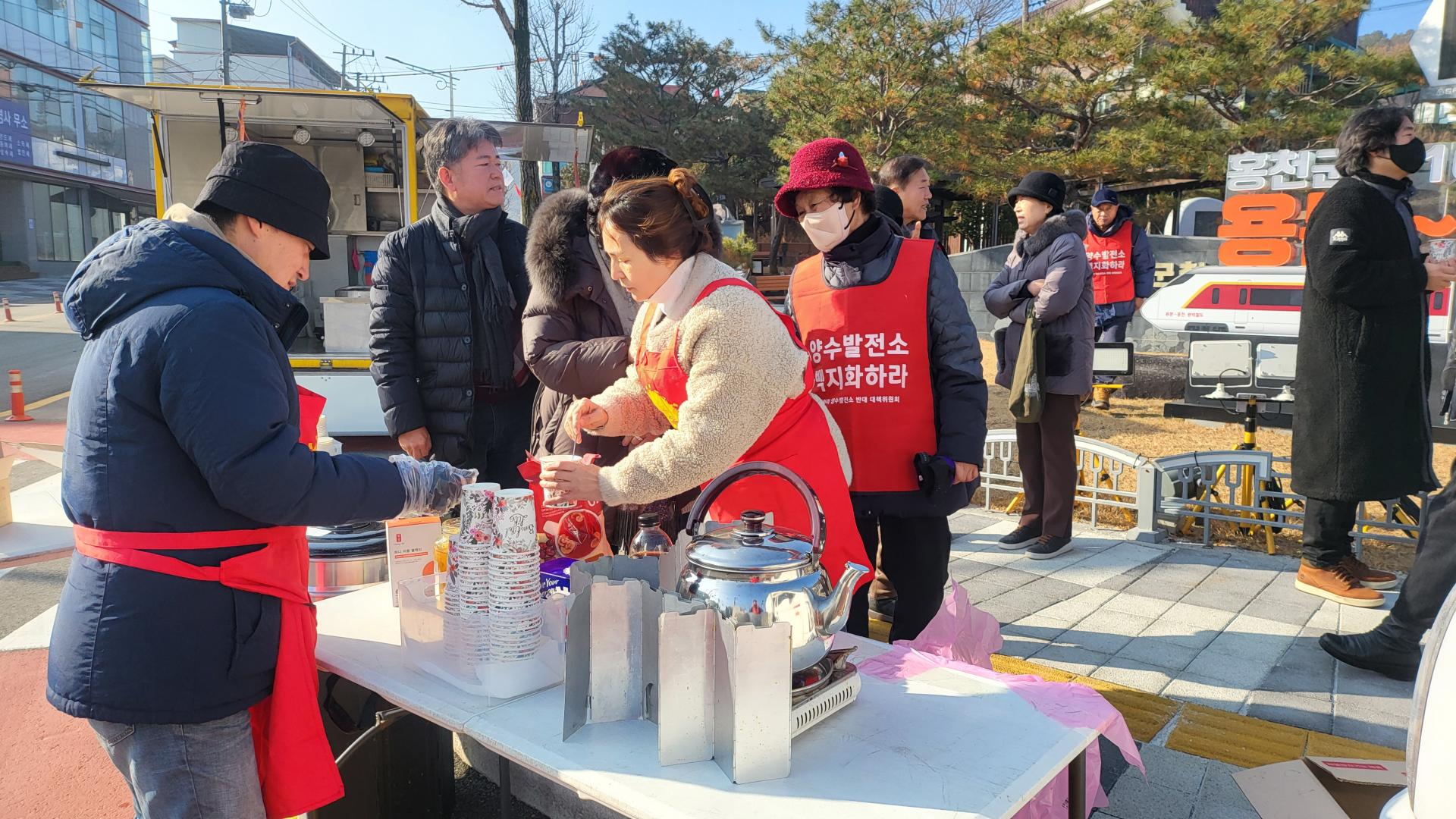 평소보다 일찍 홍천에 도착하여 점심 식사를 한 후 집회전 부터 따뜻한 차와 찐빵을 나눠드리기 위해 서둘러 준비했습니다. 따뜻한 음료는 유자차, 한라봉차, 대추생강차, 커피 등 다양하게 준비하였고, 찐빵을 쪄서 나눠드렸습니다. 집회가 시작되는 시각에 날씨가 많이 포근하여 다행이었는데 시간이 지나면서 기온은 조금식 떨어지고 바람도 살랑살랑 부는 바람에 장시간 이어지는 집회에 몸이 차가워진 분들이 중간중간 찾아와 따뜻한 차를 찾곤 하였습니다. 집회가 끝나고 홍천군청으로 방문하여 올라가 군청 로비에 모여 군수 면담을 요구하며 농성을 하고 있을 때 남은 찐빵과 차를 가지고 가서 나눠드린 후 마무리하고 부엌으로 차를 돌렸습니다.