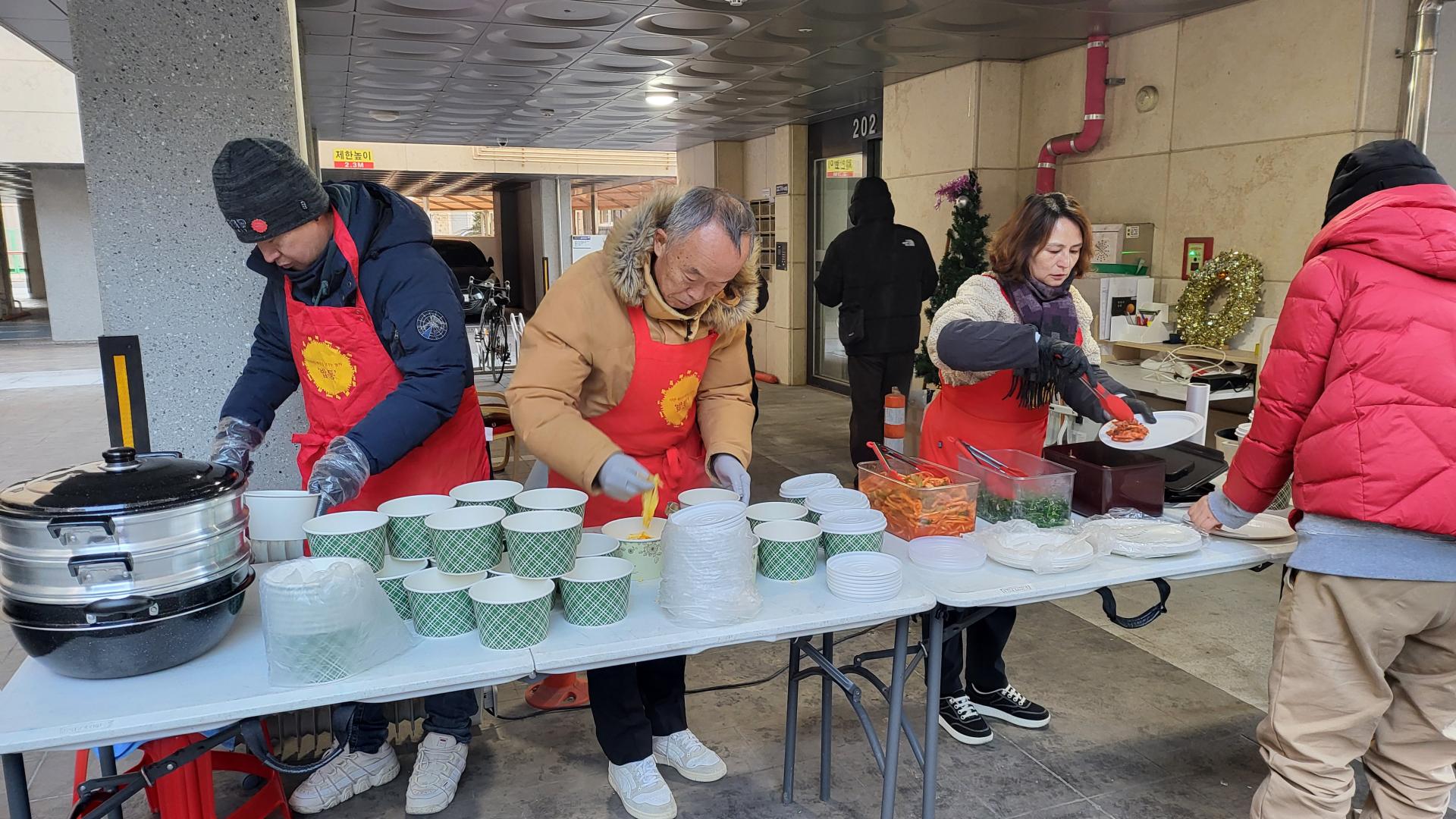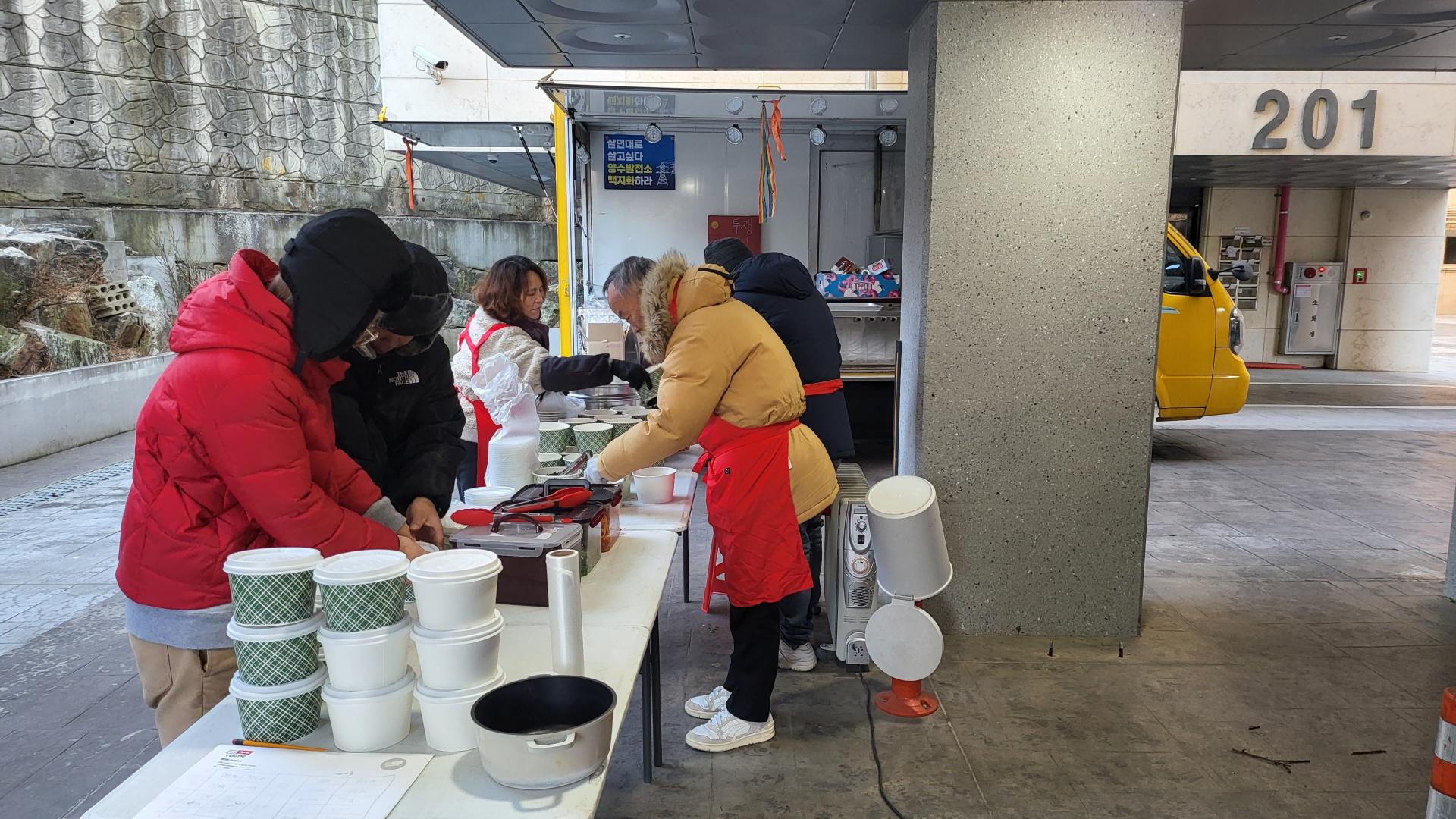 사골국물로 떡국을 끓이고 반찬으로 도라지오징어무침, 시금치나물, 김장김치를 준비하였습니다. 두 번째라 그런지 지난 번 보다는 조금은 더 체계적으로 배식이 이루어진것 같습니다. 추운 날씨에 밥알단으로 함께 해주신 현은희님, 김용춘님, 박태환님께 감사드립니다.